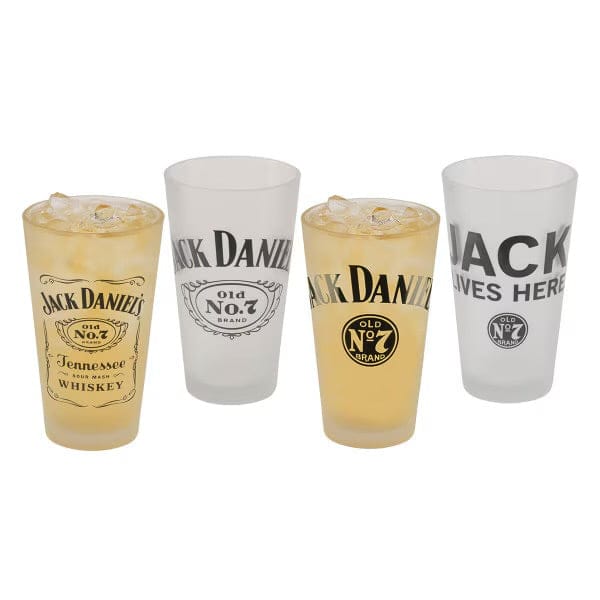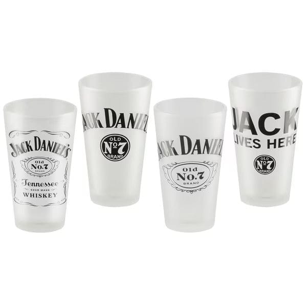 A beautiful boxed set of four frosted Jack Daniel’s pint glasses. Each with a different logo. Comes in an attractive JD gift box.