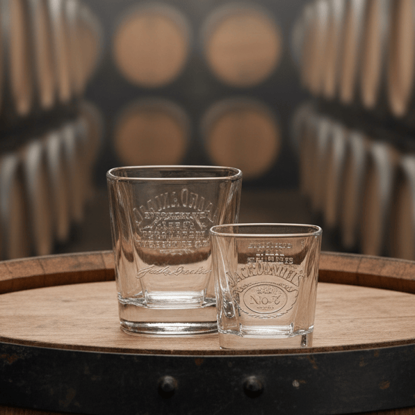 The famous JD motto embossed on one side and the swing logo on the other. This Jack Daniels Glass was part of a Holiday gift set a few years back.