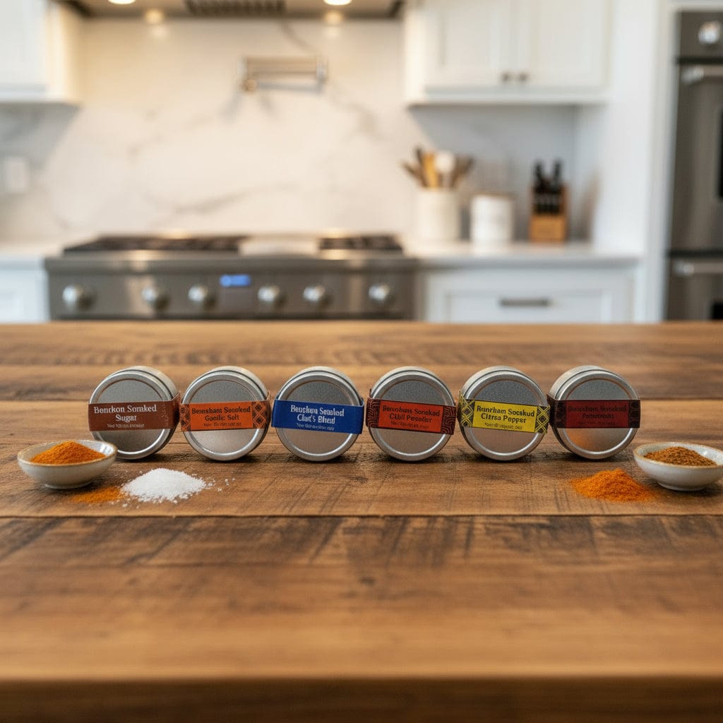 Boxed set of 6 Mini Tins of Bourbon Smoked Spices